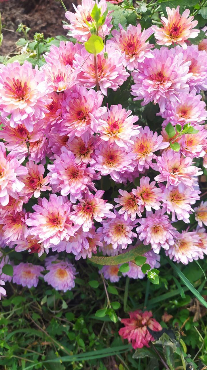 Формирует плотный куст нежно-розовых соцветий с более темной серединой.