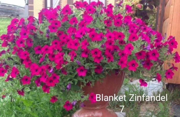 Петуния BLANKET ZINFANDEL представляет собой современный гибридный сорт с эффектной винно-бордовой окраской цветков, напоминающей благородные оттенки красного вина. Сорт создан селекционерами для получения насыщенного темного цвета лепестков и компактной формы куста. Отличается стабильным цветением и устойчивостью к неблагоприятным погодным условиям.
