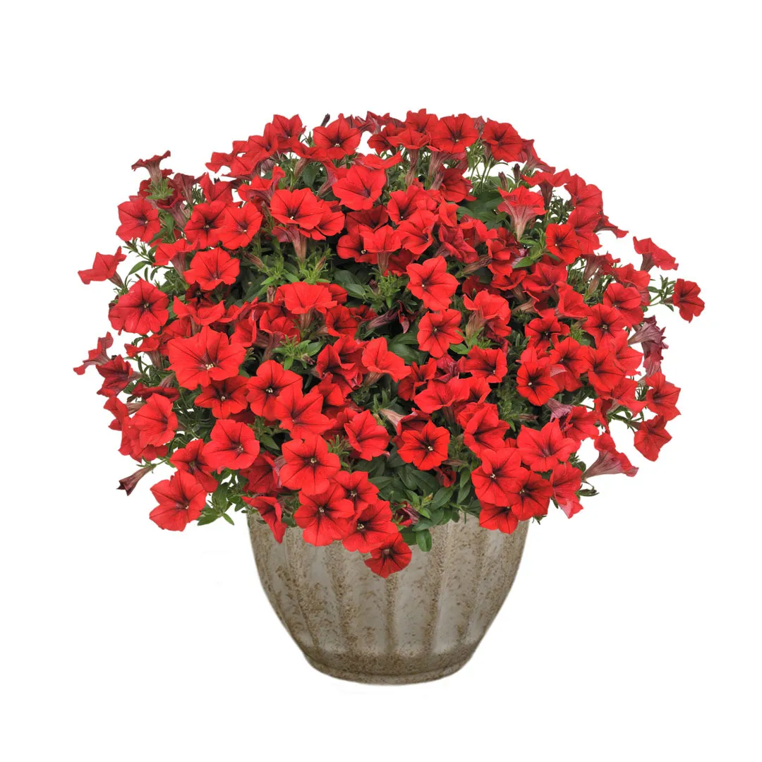 Петуния Surfinia Table Dark Red – представитель популярной серии Surfinia, созданной специально для контейнерного выращивания и ампельного озеленения. Сорт характеризуется компактным каскадным ростом и насыщенными темно-красными цветками, которые создают эффектные цветовые акценты в садовых композициях. Растения быстро адаптируются после укоренения и демонстрируют высокую декоративность на протяжении всего сезона.